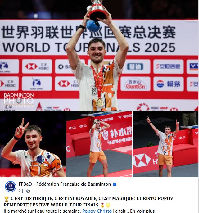 Vainqueur des World Tour Finals, Christo Popov tutoie les sommets et écrit l'histoire du bad français Mardi 23 décembre 2025 - 15:27
